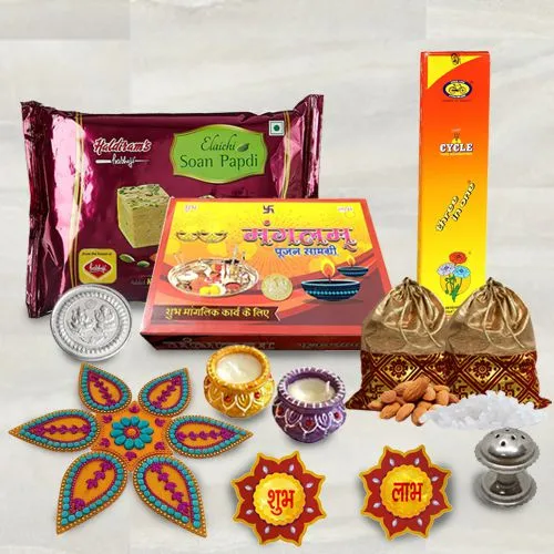 Send to your friends and loved ones this gift of Splendid Pooja N Decor Essential Gift Box for Diwali and make them smile. This Diwali Gift Combo comprises of: