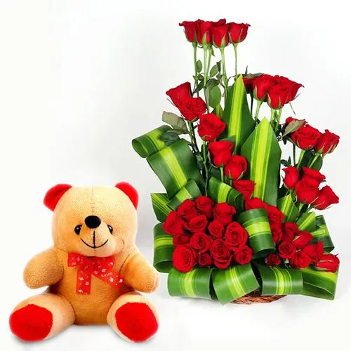 Order for your Valentine, this lovely gift of Beautiful Red Roses Arrangement with an Adorable Teddy (25cm) Combo to express your hearty love on this Valentines Day.