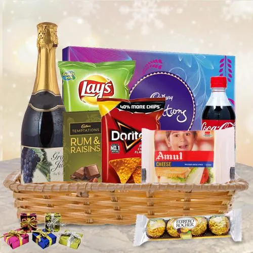 Send to your friends and loved ones this gift of Exquisite Sparkling Wine, Choco N Cheese Gift Basket and make them smile. This gift hamper contains: