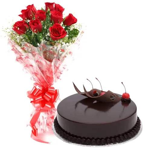 Gift this Floral Devotion Red Rose Bunch with Red Velvet Cake to your loved ones on this Valentines Day and spread happiness and love in their lives. This angelic bouquet combines 10 Red Roses and comes along with 1 lb Red Velvet Cake.
