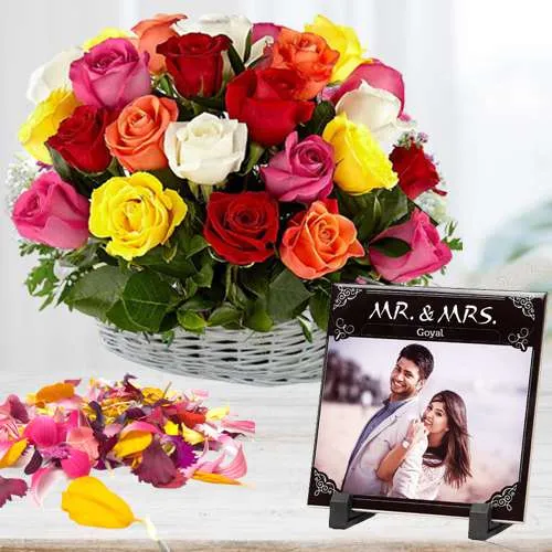 Bring smiles on the faces of your dear ones with this gift of Gorgeous Mixed Flowers Bouquet with Personalized Photo Tile and make your bond stronger.