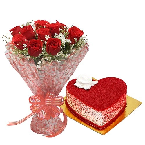 Feel great when you gift this 2.2 LB Heart Shape Red Velvet Cake with 10 Red Rose Bouquet for Valentines Day and bring joy into the lives of the people you love.