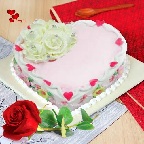 Love Cake 1 kg with Single Red Rose