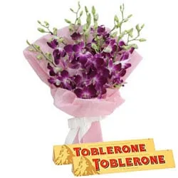 Gift your beloved a moment to cherish by sending him/her this Magnificent Bouquet of 8 Orchids with 2 pcs Toblerone Chocolate Bar (500 gr. each) that ties the strings connecting your hearts more strongly.