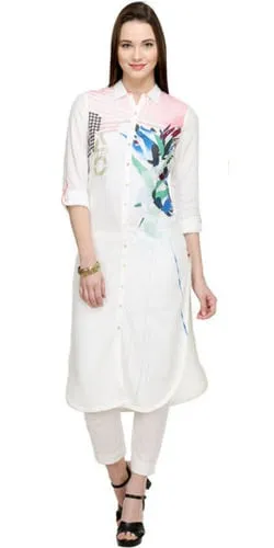 Pamper your loved one by sending them this Exotic White Kurti by 'W' exclusively meant to convey your wishes in the best manner. This simple rayon-blend Kurti has been curated by W. It has a soft detailing on the frontal panel along with Shirt collars and a regular hemline.