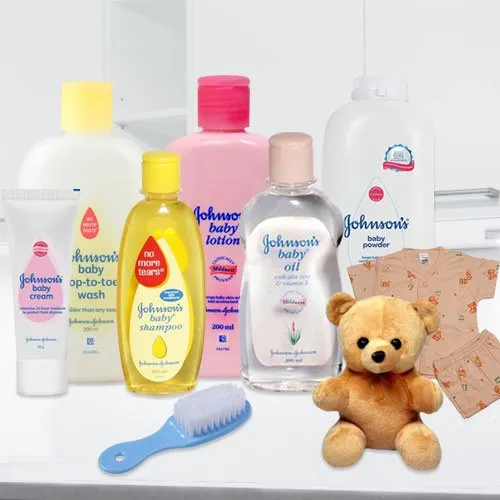 Click to deliver this Astonishing Baby Care Kit from the House of Johnson that delivers happiness instantly when unwrapped. This Johnson New Born Baby Care kit consists of various type of Baby Care items along with a Kids Wear for Boy 0-6 months and a 6 inch Teddy.