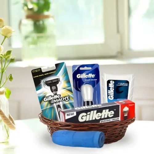 Reach out for this Mens Special Shaving Gift Basket which is a magnificent gift for the most amazing person in your life. This Gift Hamper is a perfect gift for men as the items include Gillette Mach 3 Razor, Gillette Shaving Cream, Gillette Shaving Brush, Gillette aftershave and Bathroom Towel.