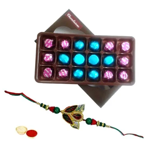 Sweep the dearest people in your life off their feet on Raksha Banshan by sending this Stylish Rakhi with a Pack of Exceptional 18 Pcs Chocolates wrapped up along with a free Rakhi, Roli Tilak and Chawal to deliver prosperity to their lives. This complete gift pack comes with various design.