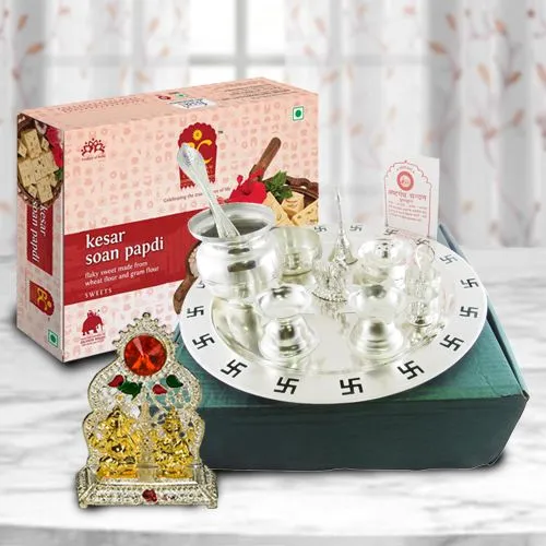 1. Items: Silver Plated Pooja Thali Set with Ashtgandh